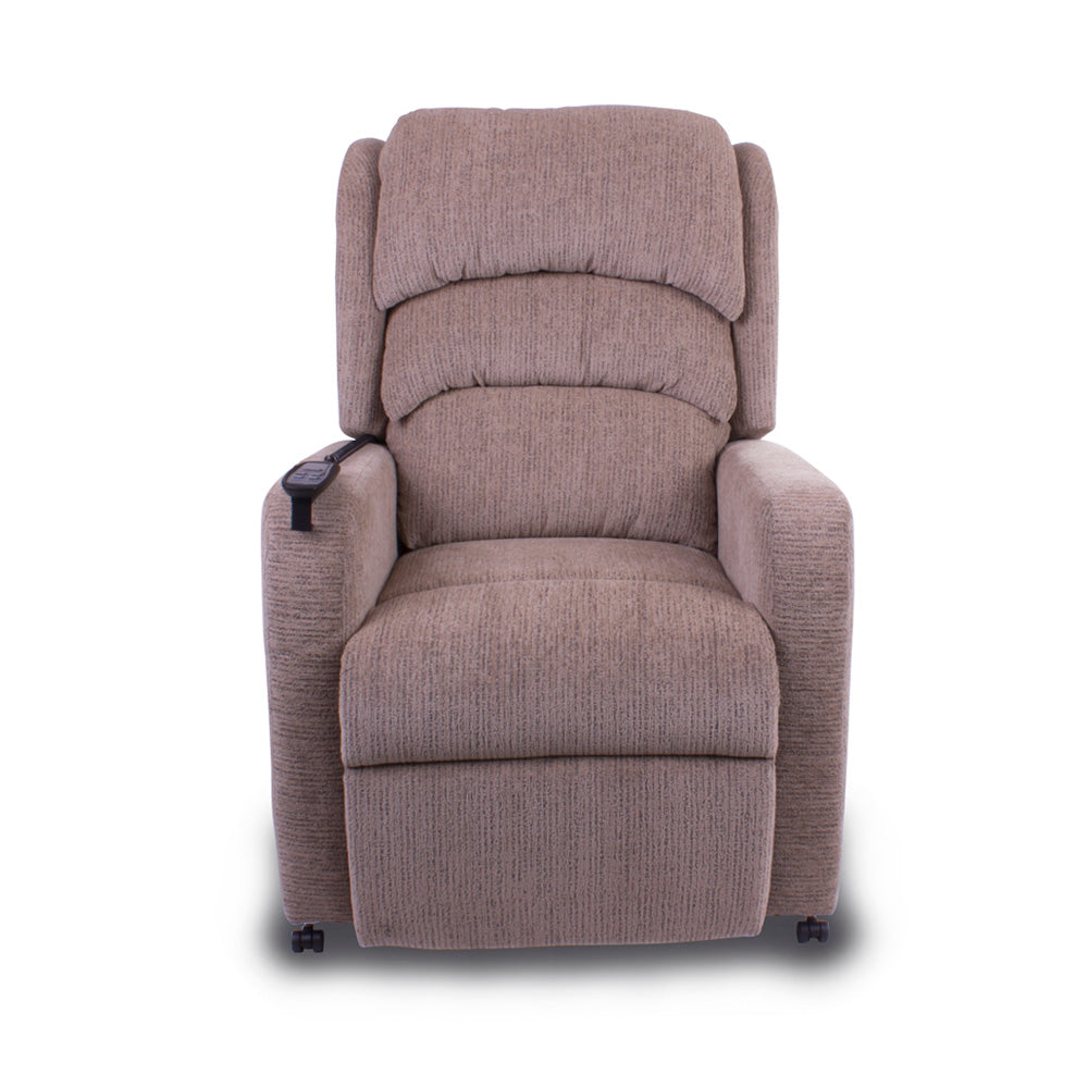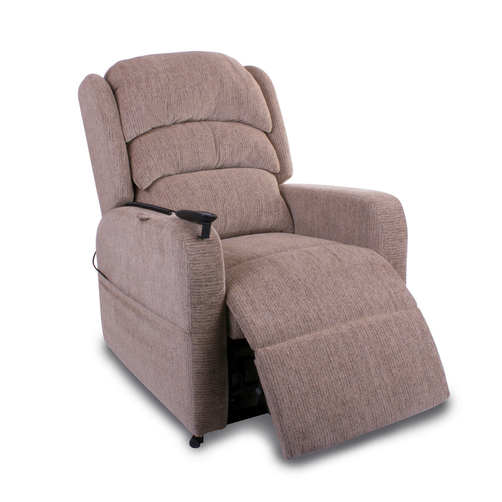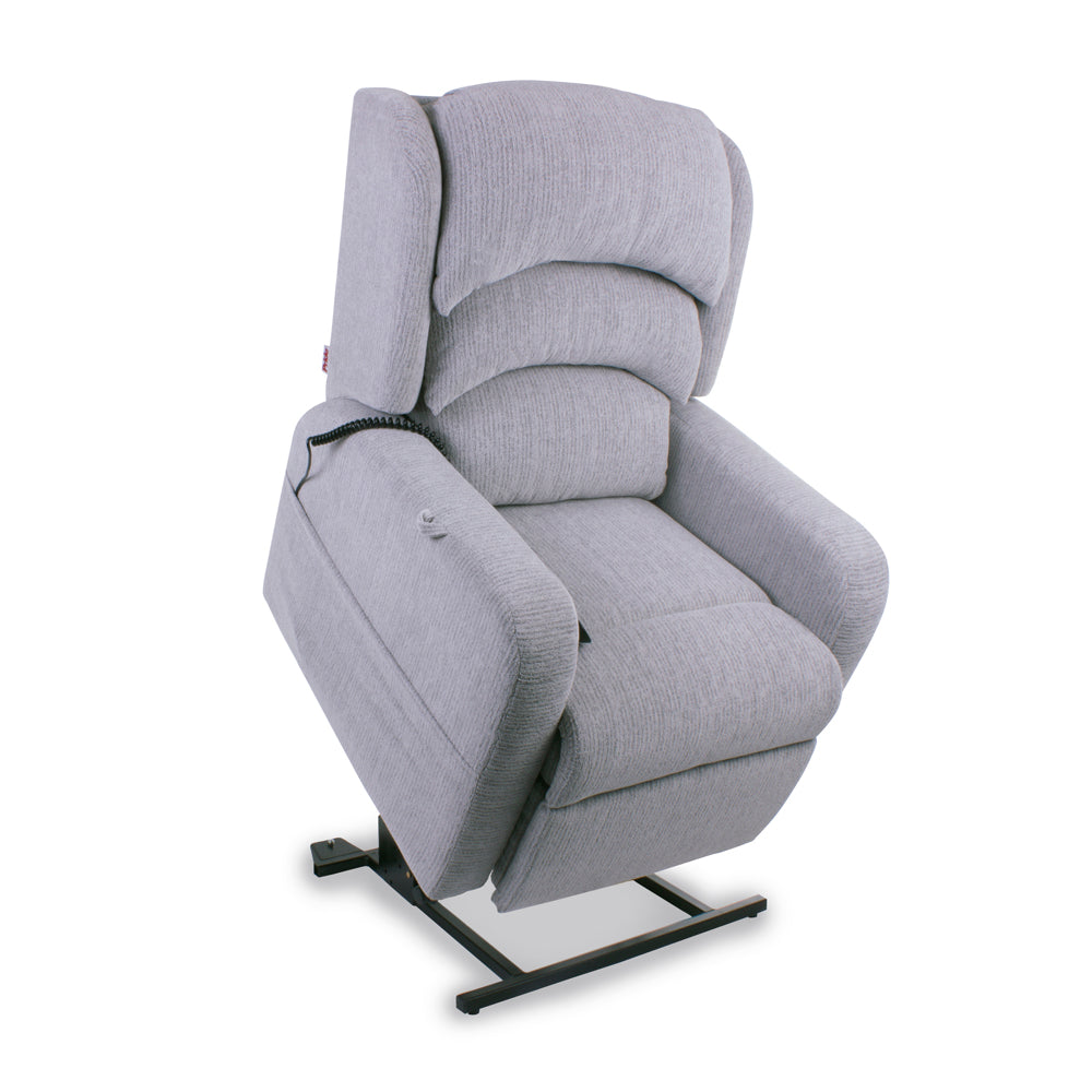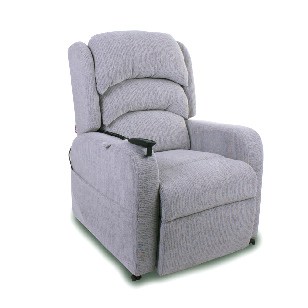 The Pride Camberley Rise and Recline Armchair is a new cost effective chair. The dual motor allows you to rise or recline to find your perfect position. The Armchair features a hand stitched deep waterfall back offering comfort and quality. The Camberley has a simple to use handset with LED buttons and smart technology with built in USB Charger. The dual motor will operate the chair back and footrest independently. The Camberley features 3 choices of colours Granite, Latte or Chocolate to compliment your living room. The Camberley has a maximum user weight of 20 Stones/127 Kilos.