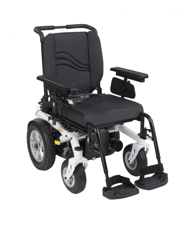 The Rueba CT is the traditional style powerchair with some modern twists - coil spring suspension, back angle adjustments, ergonomic and adjustable seat. Its streamline design allows optimum use both indoors and outdoors.